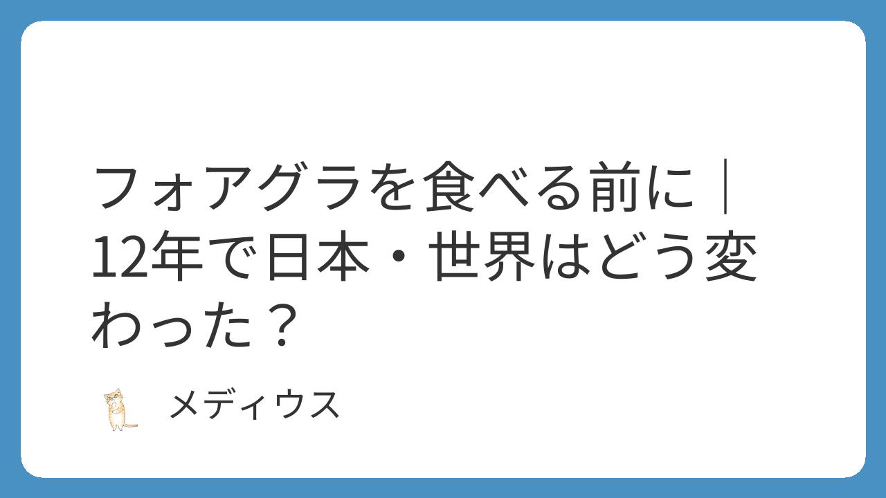 12年前、私は「フォアグラはこのようにして作られているという事だけは知っておくべきではないだろうか」と書いた。