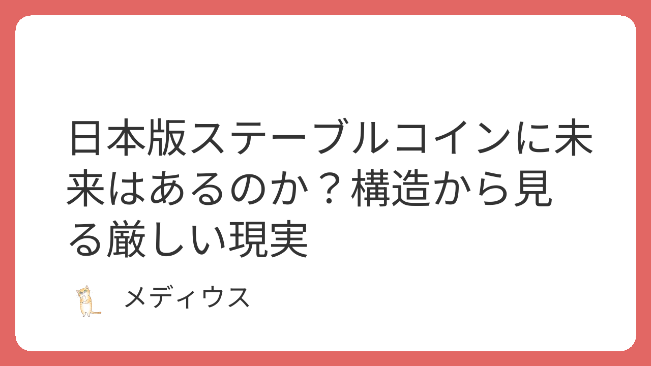 構造を調べてみると、確かにグローバルで展開されるドル建てステーブルコインには明確な将来性がある。しかし、日本版は構造的に極めて厳しい、というのが私の感想だ。