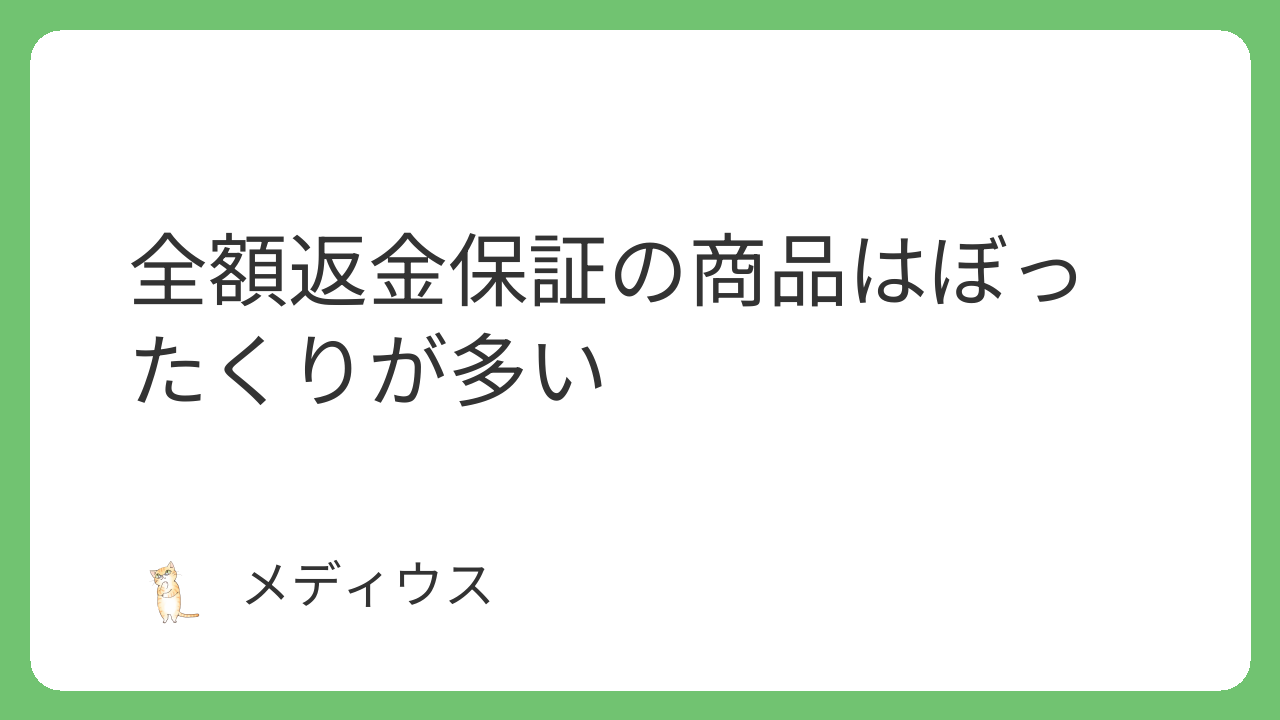 「全額返金保証」という言葉を聞いて皆さんはどう思うだろう?