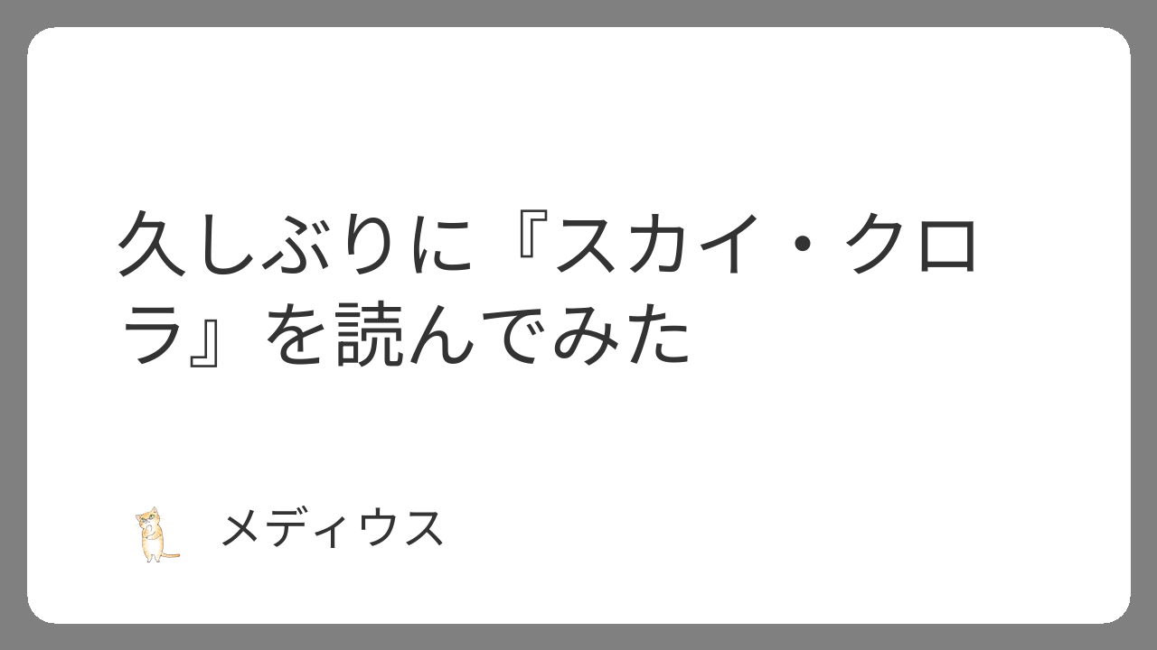 最後に、私は基本的に経済系や政治系、自己啓発系以外の本はあまり読まない(漫画は読むが・・・)がこの『スカイ・クロラ』だけは発売から10年以上経った今でも私の中のベスト3に入る素晴らしい本だと思う。